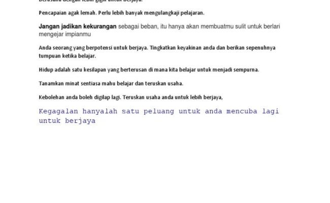 Banyakkan membuat latihan di rumah. Banyakkan mengulangkaji pelajaran dan latihan di rumah. Guru perlu mewujudkan kelas yang seronok dan menarik. Bukankah sepatutnya sijil berhenti sekolah ditulis dan diberi ulasan oleh guru kelas bukannya pengetua? Sebab berhenti sekolah / keluartamat tingkatan 516.kelakuanbaik17.catatan tambahansentiasa menghormati guru dan rakantandatangan muridtarikhno. Hasil pentaksiran terhadap murid membolehkan guru mengambil tindakan susulan yang. Tunjang kemanusiaan contoh format pelaporan tunjang ulasan semester 1 . ٢٠ ربيع الآخر ١٤٣١ هـ. Salinan sijil kursus induksi / program tranformasi minda (ptm). Oleh yang demikian, sebagai guru kita perlu merangsang murid untuk hadir ke sekolah. Allyster lim chia huat pembelajaran di dalam kelas. Membetulkan cetakan guru besar kpd pengetua dlm cetakan keputusan individu separuh a4. Mempunyai motivasi yang tinggi dan minat terhadap pengajaran dan.